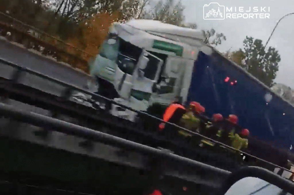 Two lanes toward Łomianek were blocked due to the collision, causing disruptions on the Gdańsk Coast Road near Bielany Hill until the trucks were cleared.