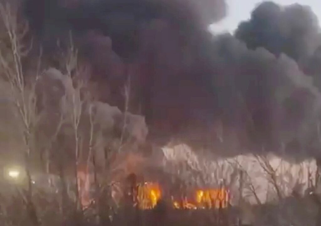 After the attack, a large fire broke out in the base. Recordings show several sources of fire – probably fuel tanks are burning. Russian authorities confirmed the attack on the oil pumping station and informed that 26 units of equipment were dispatched to extinguish the fire.