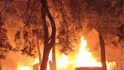 Two passenger cars – a Renault and a Ssangyong – collided at the intersection of Spisak and Kompania AK Kordian streets in Ursus. Both vehicles were pushed off the road onto the sidewalk, damaging a traffic sign and a nearby fence.