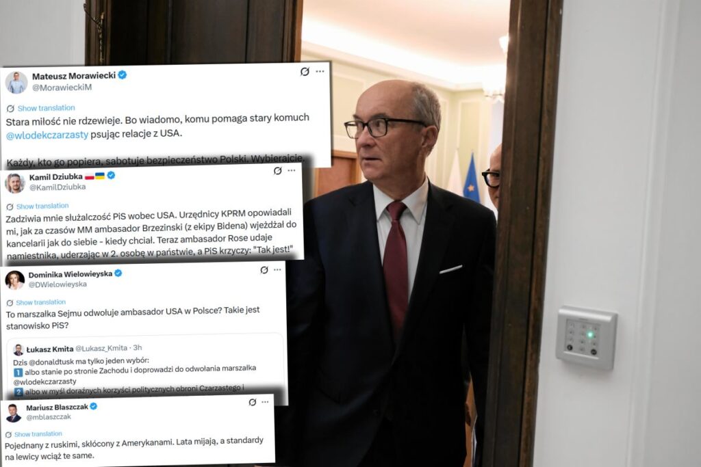 TVN24’s Patryk Michalski noted PiS politicians had not moved to oust Czarzasty until the US ambassador’s post, highlighting that Sejm rules require a formal 46-deputy proposal to dismiss the Marshal. Onet’s Kamil Dziubka criticized PiS’s “servility” towards the US, contrasting it with past ambassador conduct.