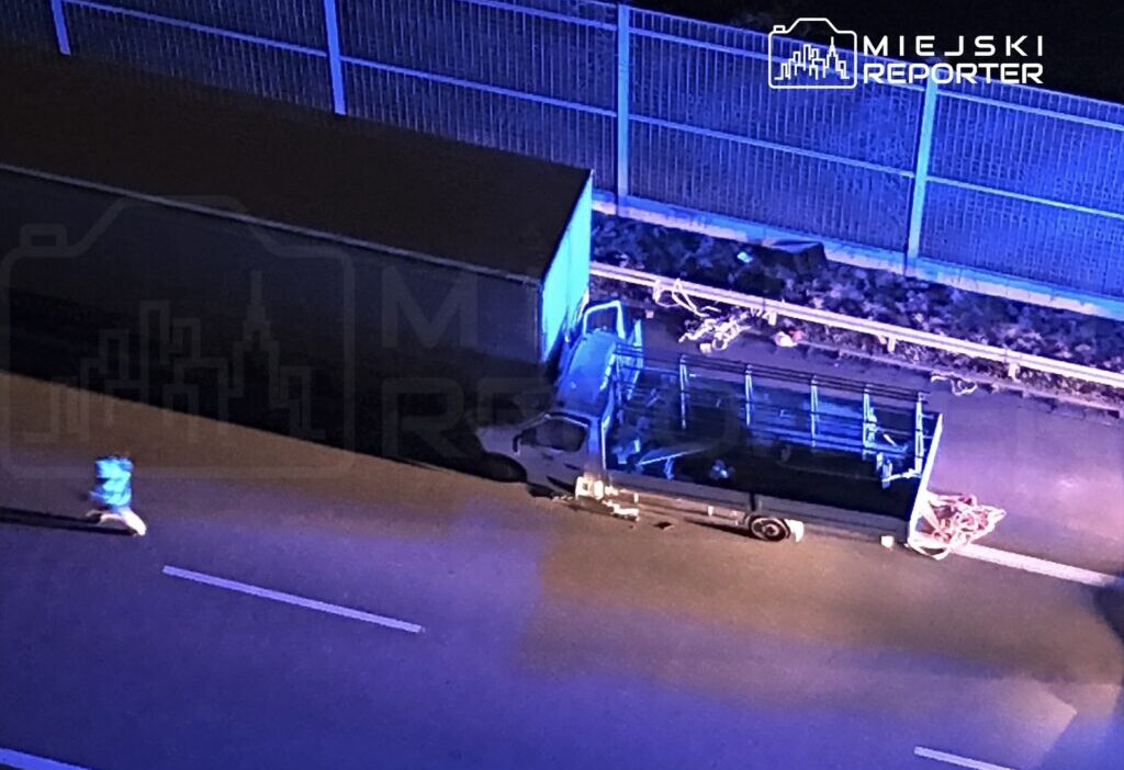 Two hospitalized after delivery vehicle dragged 2km by truck on A2 near Warsaw in February 2026 accident.