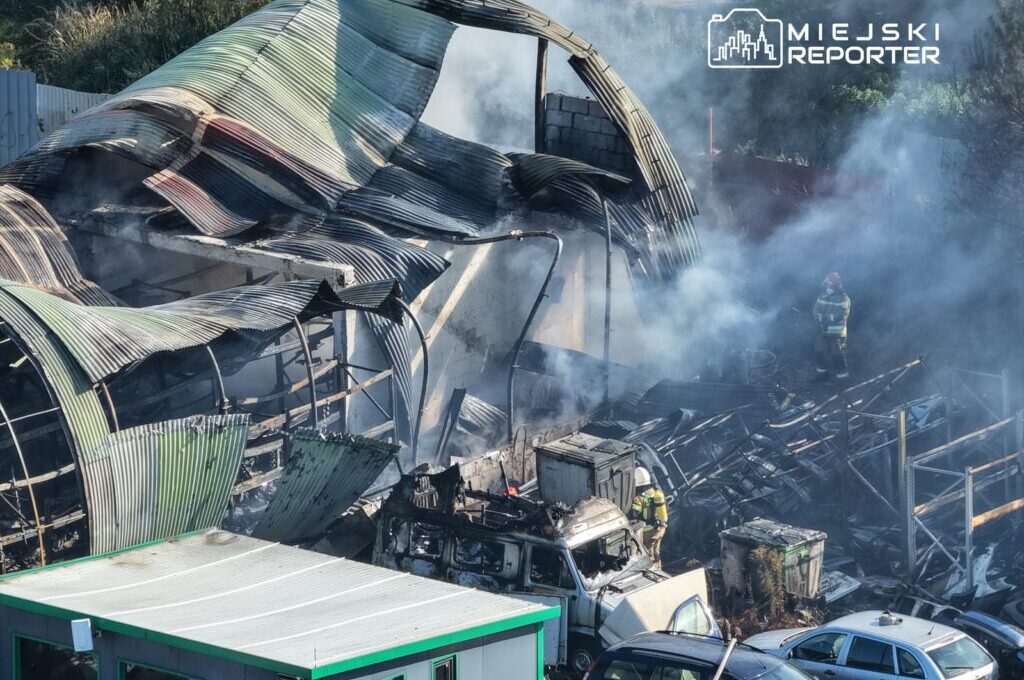 JRG Błonie reported that all workers had already vacated the premises before firefighters’ arrival, and that the fire was reported to the control center shortly after 10 a.m., with the structure measuring 15 by 20 m.