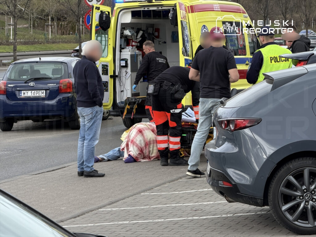 Shortly before 3:00 PM on Tuesday, March 31st, a man was struck by a Toyota used for passenger transport on a side lane of Aleja Prymasa Tysiąclecia in Warsaw.