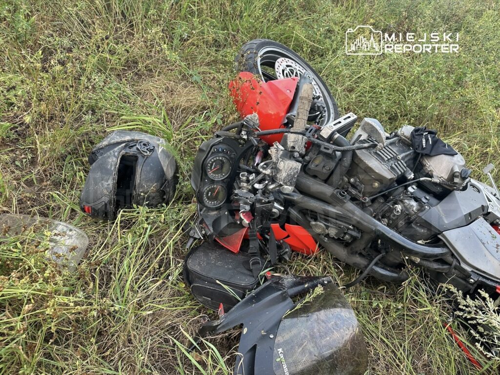 A collision occurred on September 3rd at approximately 5 PM on Bielika Street in Wawer, near the Patriotów and Wał Miedzeszyński junction. A motorcyclist, driving a Kawasaki Z750 from the Wał Miedzeszyński side, lost control on a nearly straight section of the road and crashed. The impact was severe, with parts of the vehicle, including the fuel tank, scattered over several dozen meters.