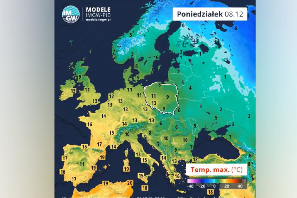 IMGW’s long‑term forecast indicates a noticeable drop in temperatures during the second half of December. A clear decline before Christmas will set a trend that continues into late December and early January, with the national minimum possibly falling below zero.