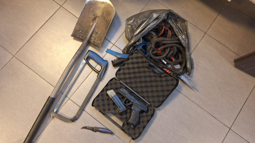 When seized, the men claimed they were hobbyists hunting metal objects with a metal detector. Police found a spade, a metal saw, a toolbox of knives, metal cables, a headlamp, work gloves, and even a pneumatic pistol in the trunk—none of which are part of a legitimate metal‑detecting hobby.