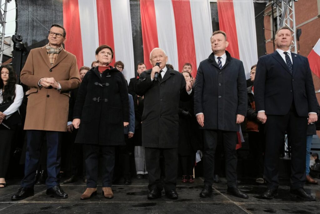 Within PiS, tension exists between factions led by Mateusz Morawiecki and those supporting Tobiasz Bocheński. The latter group includes Przemysław Czarnek, Patryk Jaki, and Jacek Sasin. Together they convened to draft a new party program for the upcoming elections, advocating a sharper rightward shift and more radical policies. Morawiecki’s camp, in contrast, pushes for a return to centrist positions.
