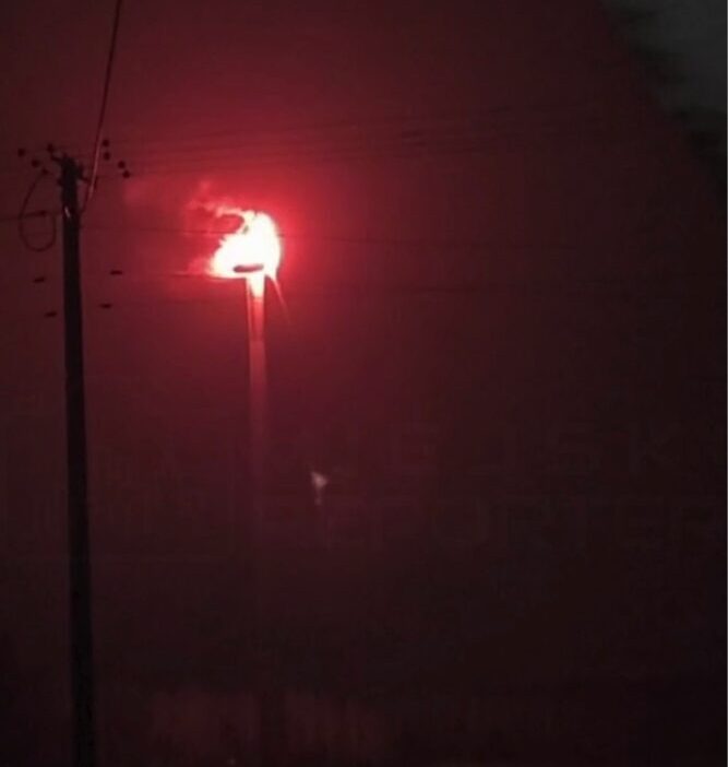 Upon arrival, firefighters found the upper part of the turbine ablaze. Due to the structure’s height, direct application of extinguishing agents to the source of the fire was impossible. Efforts focused on securing the area around the turbine, monitoring the burning structure, and extinguishing falling fragments that could start new fires.