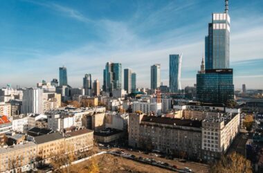A window pane from the 11th floor of the Varso Tower in Warsaw fell onto a cafe garden at ground level and a nearby parking lot on Alei Jerozolimskich.