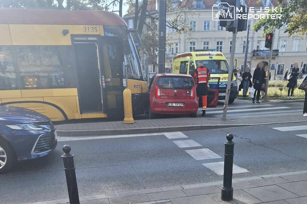 A woman driving a Skoda crashed into tram line 20 in Warsaw’s Solidarity Avenue near the Independence Museum on Wednesday, September 17, at around 9:30 am.