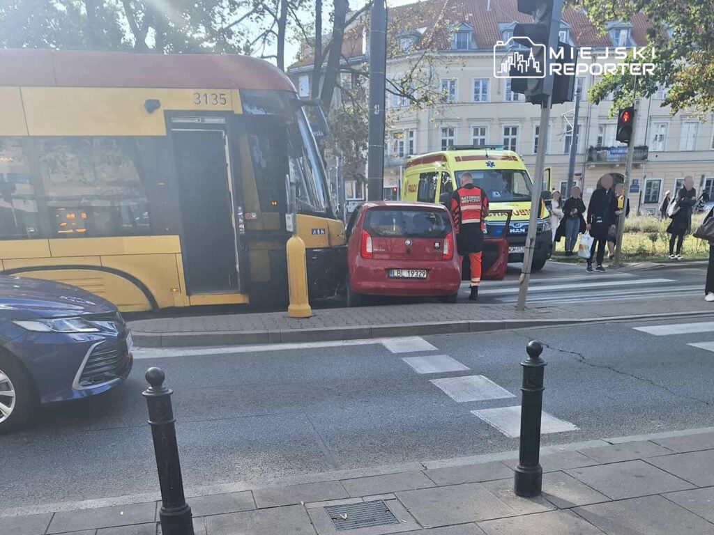 A woman driving a Skoda crashed into tram line 20 in Warsaw’s Solidarity Avenue near the Independence Museum on Wednesday, September 17, at around 9:30 am.